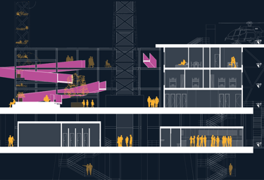 Il progetto estrapola dal modulo abitativo originale le griglie strutturali che definiscono lo spazio pubblico, giustapponendo vuoti intersecati da elementi di collegamento e spazi aperti flessibili, densificando la piazza antistante per organizzarne l'utilizzo.